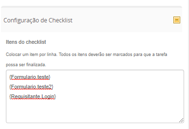 A funcionalidade de checklist permite criar itens separados que devem ser marcados ao concluir uma tarefa, de forma que ela não prossiga caso todos os itens não estejam marcados. Isso permite que as tarefas possuam instruções que devem ser seguidas para seu encerramento.