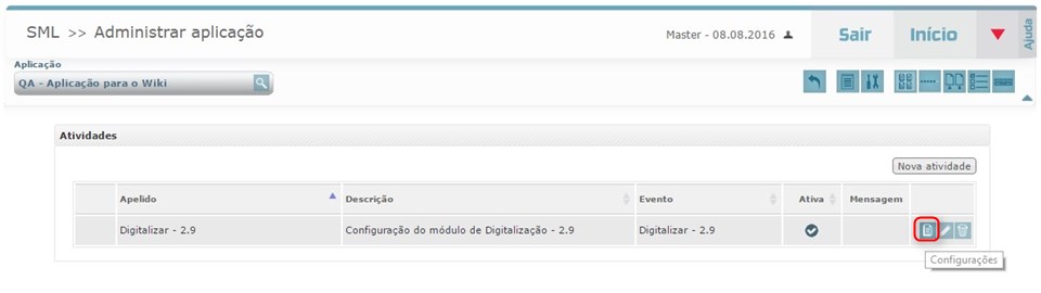 Nesta atividade é possível configurar o módulo de digitalização, incluindo o tipo de digitalização realizada, configurações de captura e filtros aplicados na imagem, campos exibidos para preenchimento, entre outros. Para saber como criar e configurar o evento de digitalização de documentos, siga os procedimentos a seguir: