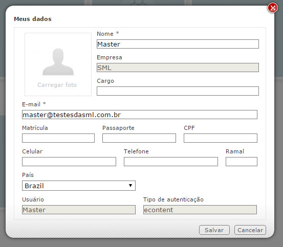 Altere os campos desejados. Inclusive, é possível alterar a foto do usuário. Após efetuar as alterações, clique em Salvar: