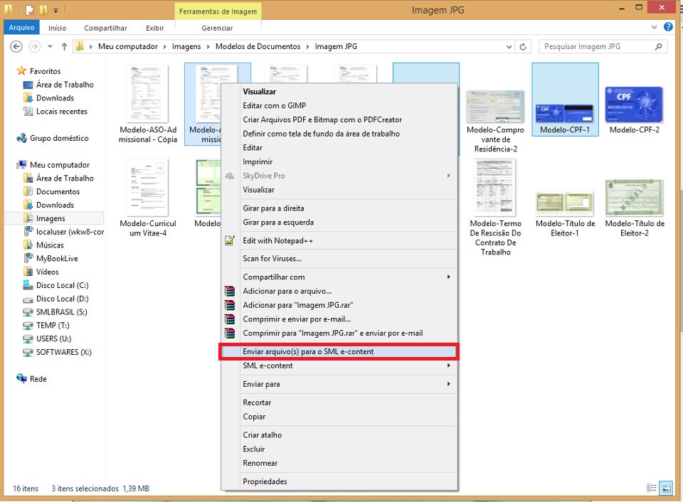 Ao utilizar o menu de contexto do Windows, é possível enviar arquivos que estejam salvos na estação do usuário diretamente para o Orquestra ECM, para uma aplicação ou para os Meus Documentos do usuário. Confira nos passos abaixo como realizar esta operação.