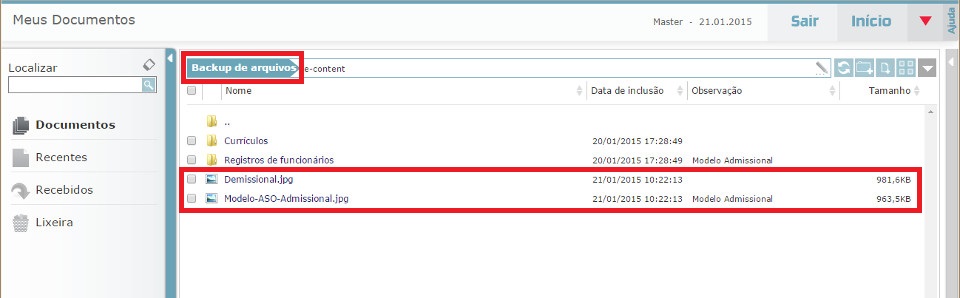 O usuário que recebeu a cópia poderá visualizar o arquivo pela aba Recebidos do próprio módulo de Meus Documentos: