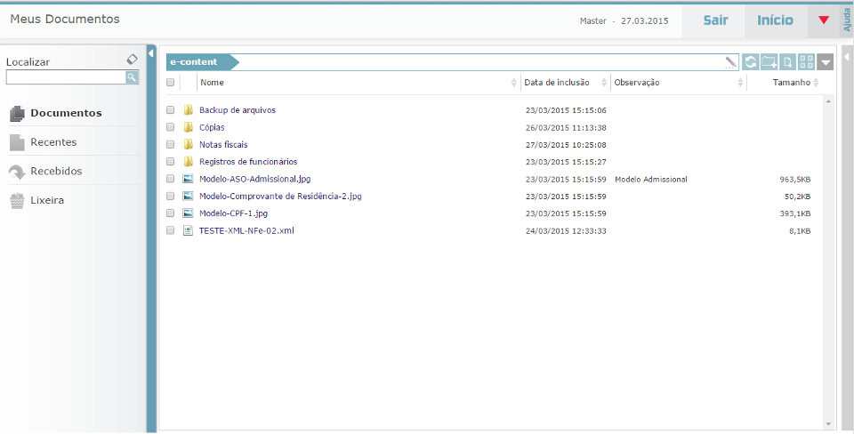 Para efetuar o download de arquivos de Meus Documentos, siga um dos passos abaixo: