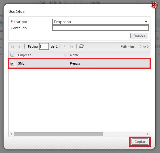 Selecione um ou mais usuários que receberão a cópia e clique em Copiar: