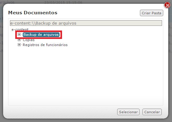 Selecione a pasta que receberá a cópia, clicando sobre a mesma: